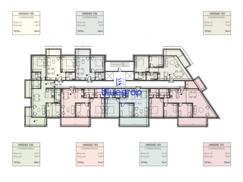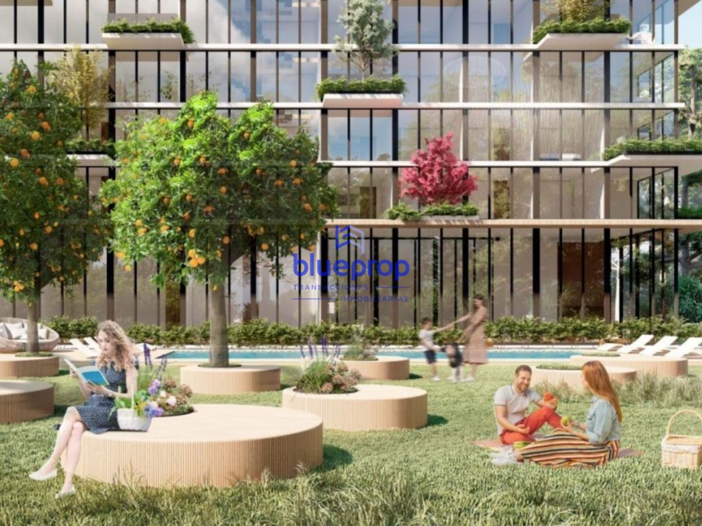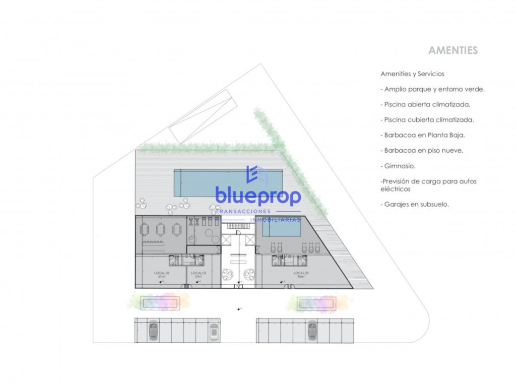 Unidades de apartamentos de 1, 2 y 3 dormitorios, todas con amplios ambientes y terrazas de múltiple altura. También cuenta con locales y un amplio parque para disfrutar del entorno. Amenities y servicios: Amplio parque y entorno verde. Piscina abierta climatizada. Piscina cubierta climatizada. Barbacoa en Planta Baja. Barbacoa en piso nueve. Gimnasio. Previsión de carga para autos eléctricos. Garajes en subsuelo.