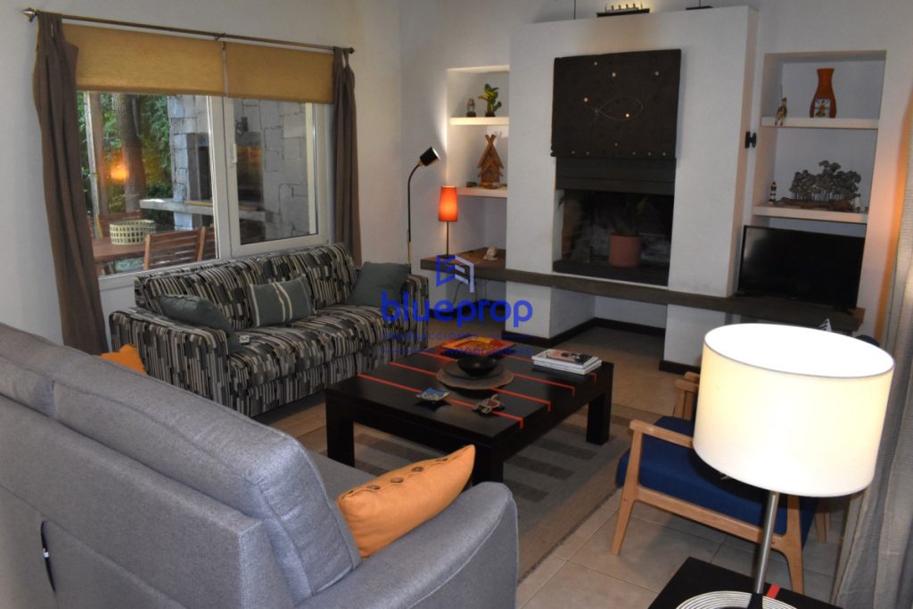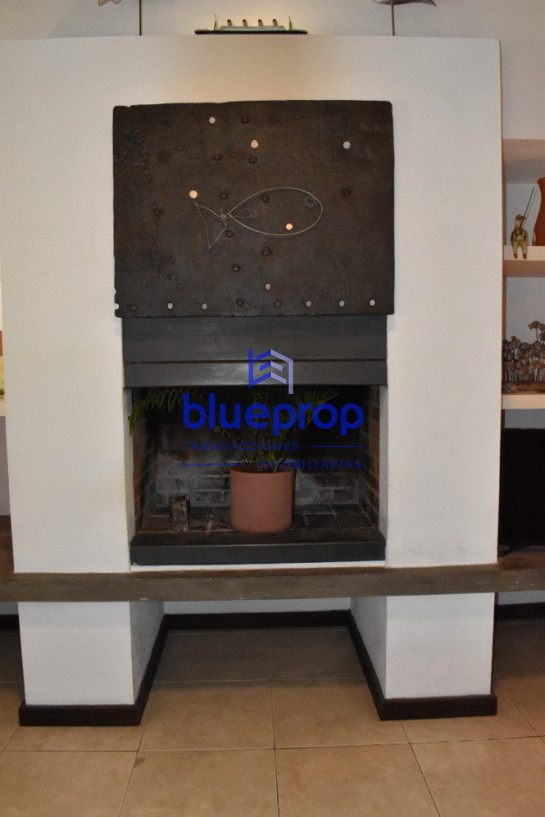 -Amplio y luminoso living-comedor con hogar a leña