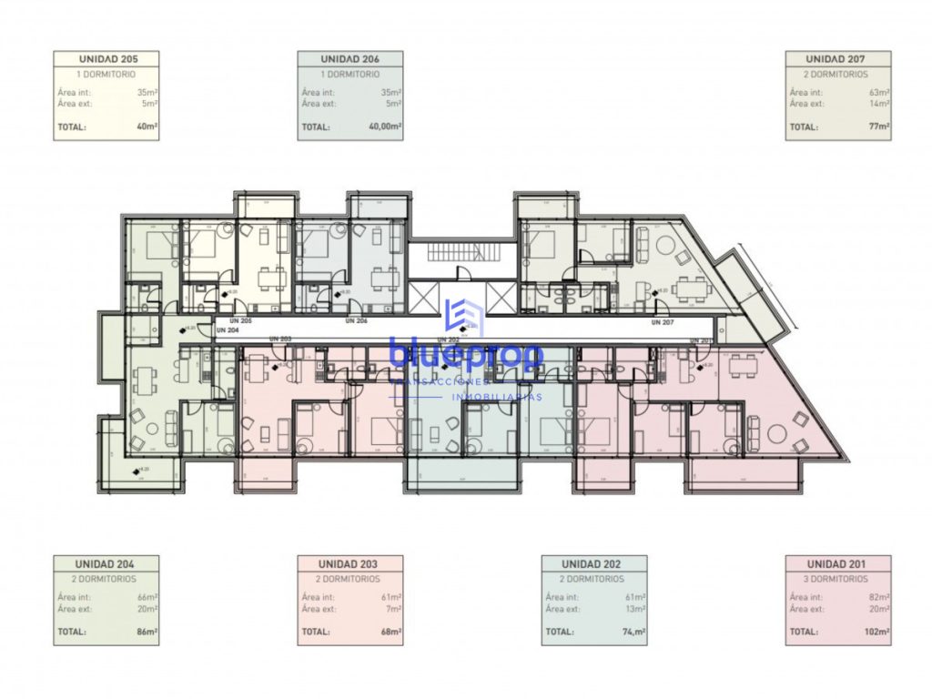 Unidades de apartamentos de 1, 2 y 3 dormitorios, todas con amplios ambientes y terrazas de múltiple altura. También cuenta con locales y un amplio parque para disfrutar del entorno. Amenities y servicios: Amplio parque y entorno verde. Piscina abierta climatizada. Piscina cubierta climatizada. Barbacoa en Planta Baja. Barbacoa en piso nueve. Gimnasio. Previsión de carga para autos eléctricos. Garajes en subsuelo.