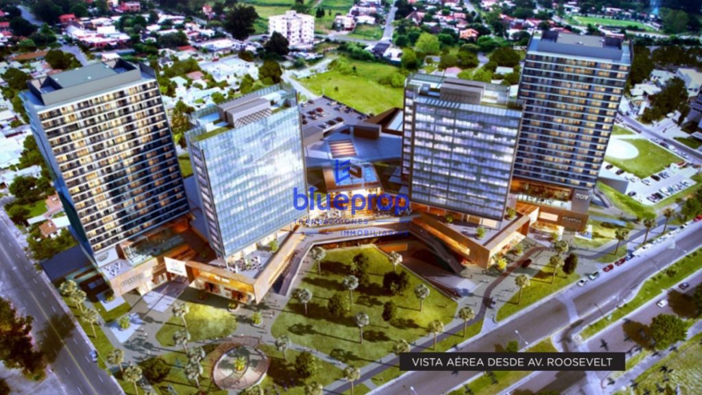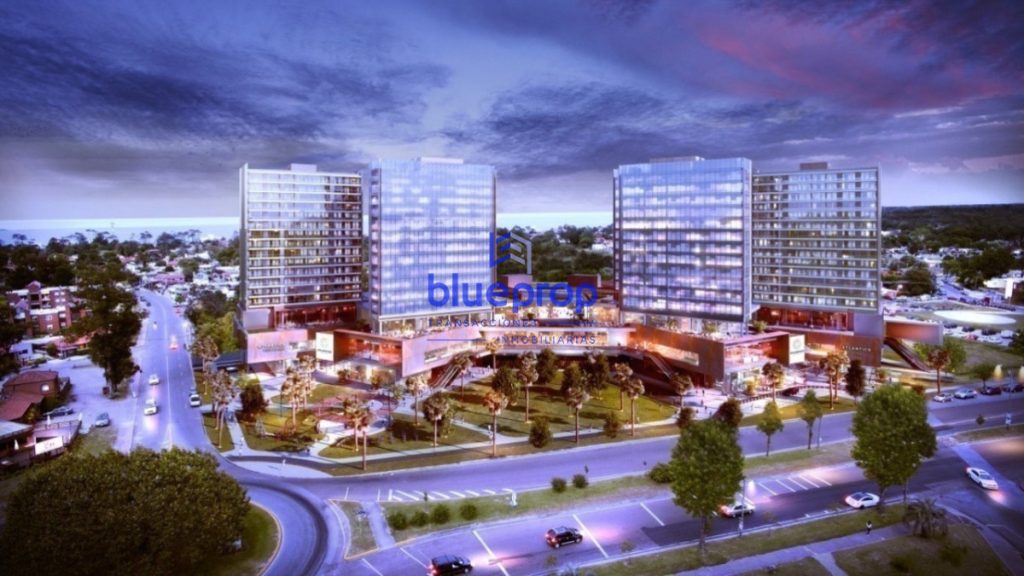 Conjunto edilicio compuesto por un Centro Comercial y cuatro torres, compuesto de unidades mono-ambientes, uno, dos y tres dormitorios.