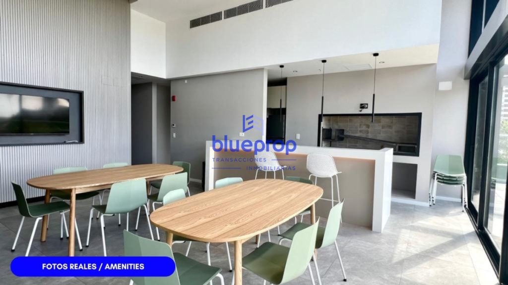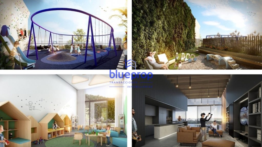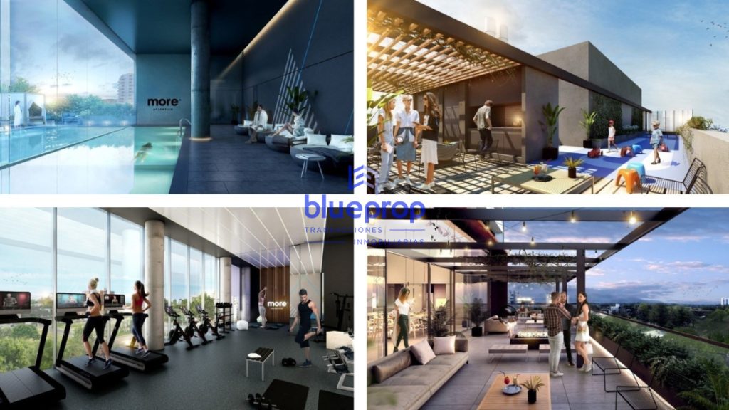 Amenities: Piscina climatizada In-out, piscina exterior, solarium equipado con reposeras y sombrilla, sala de masajes, sauna húmedo, gimnasio, vestuarios, juegos exteriores para niños, pet garden, pet grooming, terrazas exteriores con excepcionales vistas panorámicas del entorno y la ciudad, dos barbacoas y cocina gourmet integrada, teen área equipada como play room y con un bar de previas integrado al espacio, amplia terraza equipada con livings exteriores, kids área, servicios higienicos.