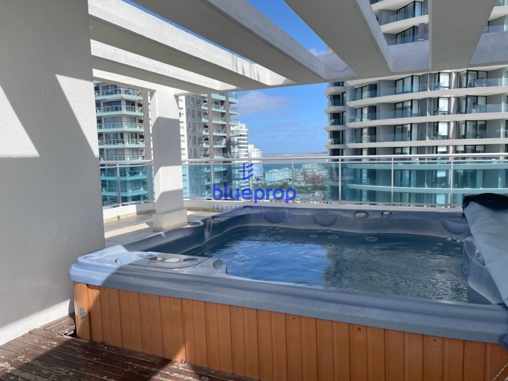 Apartamento de dos dormitorios con dos baños completos, área de living comedor con cocina integrada, generosa terraza con salida de todos los ambientes, aberturas con vidrios DVH, garaje fijo, A.A. Piscina externa (climatizada en verano), sauna, ducha escocesa, sala de relax, gym, barbacoas con vistas panoramicas, SUM, lavanderia, recepción permanente, mucamas todo el año. Ubicación estratégica de Av. Chiverta, a solo tres cuadras de Playa Mansa y tres de Playa Brava, zonas comerciales y gastronómicas cercanas, centro a pocas cuadras, ideal para disfrutar del lugar y entorno.