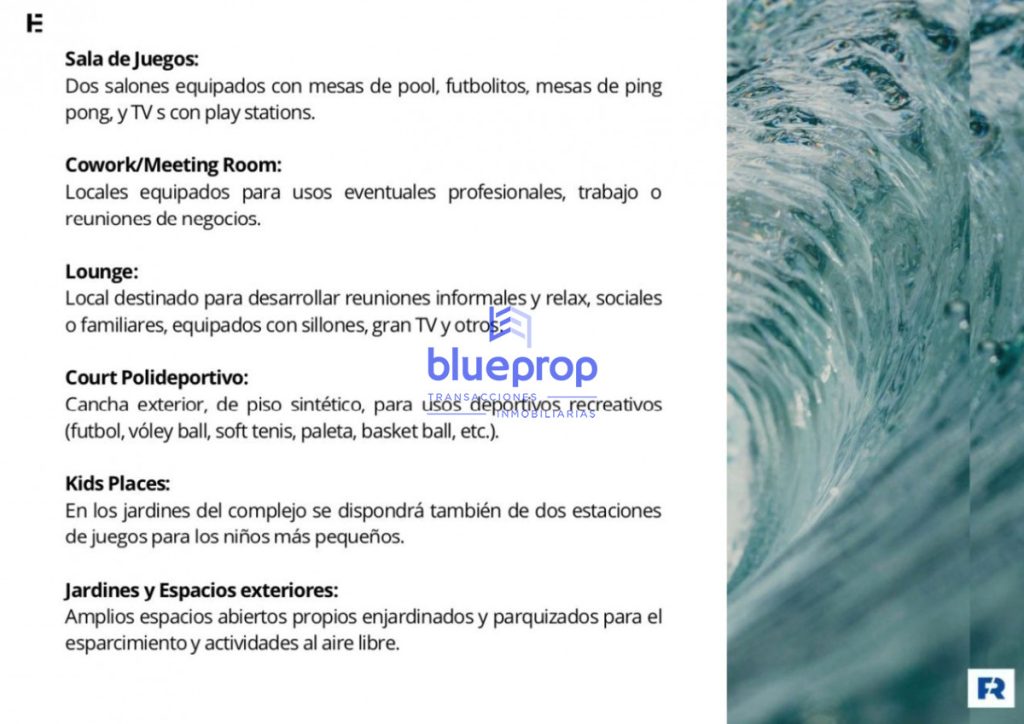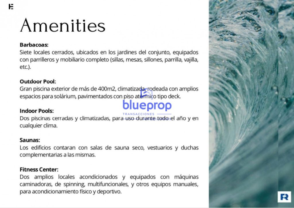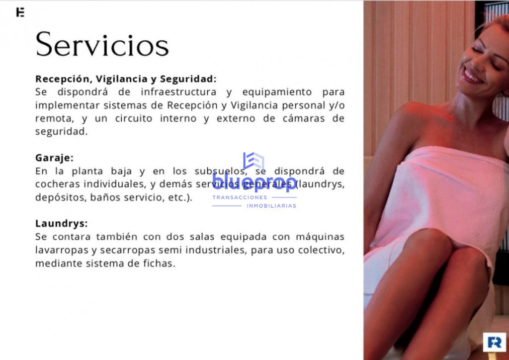 Cinco ascensores, cocheras en planta baja y dos subsuelos de garajes.- AMENITIES: Barbacoas. Piscina exterior de más de 400 m2 de espejo de agua climatizada. Piscina cerrada y climatizada. Sauna seco, vestuarios y duchas. Sala de juegos. CoworkMeeting room. Salón para reuniones informales y relax, sociales ó familiares. Cancha exterior de piso sintético para usos deportivos recreativos. Kids Places. SERVICIOS: Recepción, vigilancia y seguridad. Laundrys (mediante sistema de fichas). Portero eléctrico. Portones automáticos. CCTV. Wifi en áreas comunes internas y externas. Se entrega con anafe, campana extractora y calefón. Losa radiante (optativa).