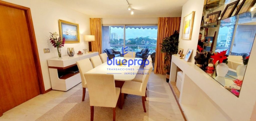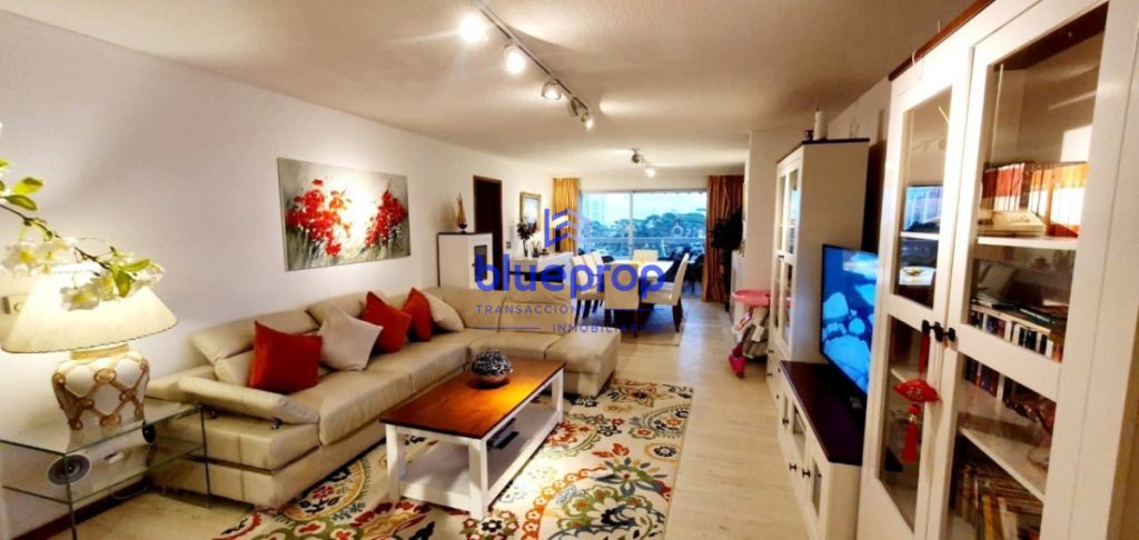 Generosa planta de tres dormitorios, tres baños (ppal en suite), habitación de servicio con baño, cocina amplia con desayunador, terraza amplia al frente. Recepción permanente, mucamas todo el año, piscina, sala juegos. Ubicación estratégica para vivir todo el año a metros del Punta Shopping, colegios, facultades, zonas comerciales, cafeterías, restaurantes y ambas playas (Mansa y Brava).